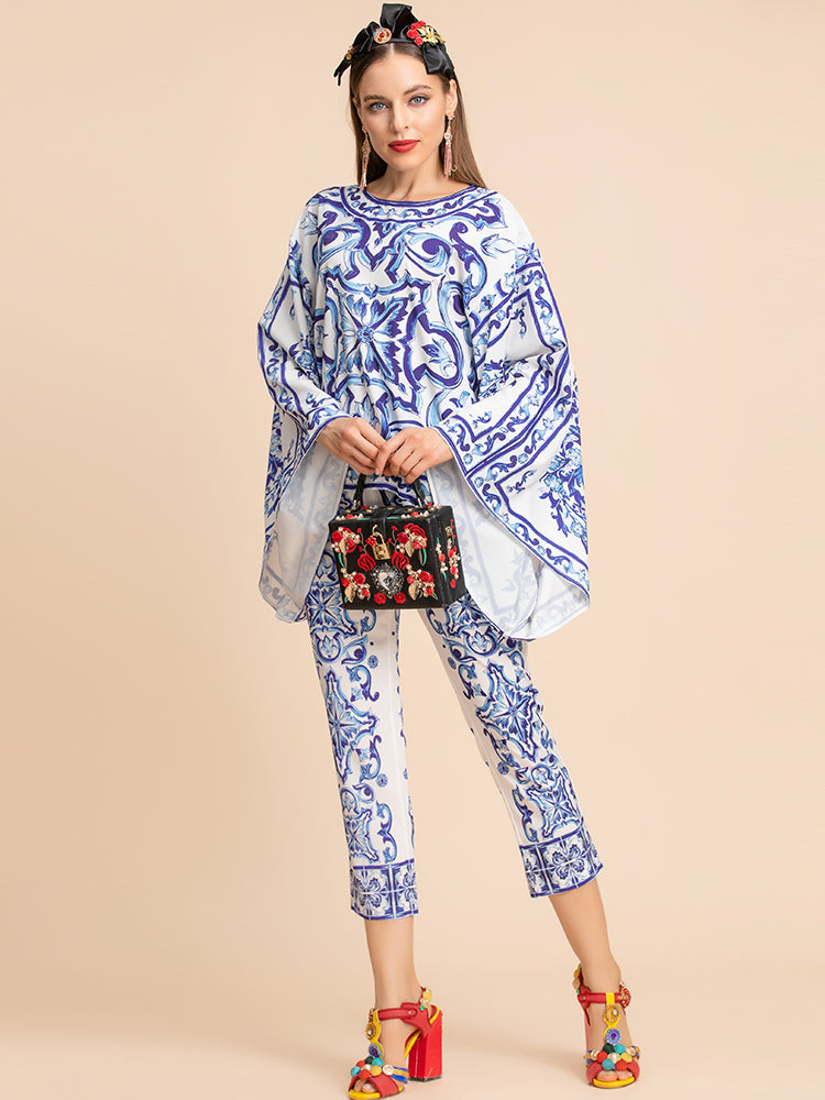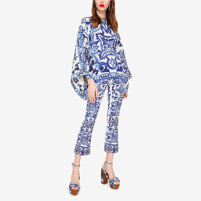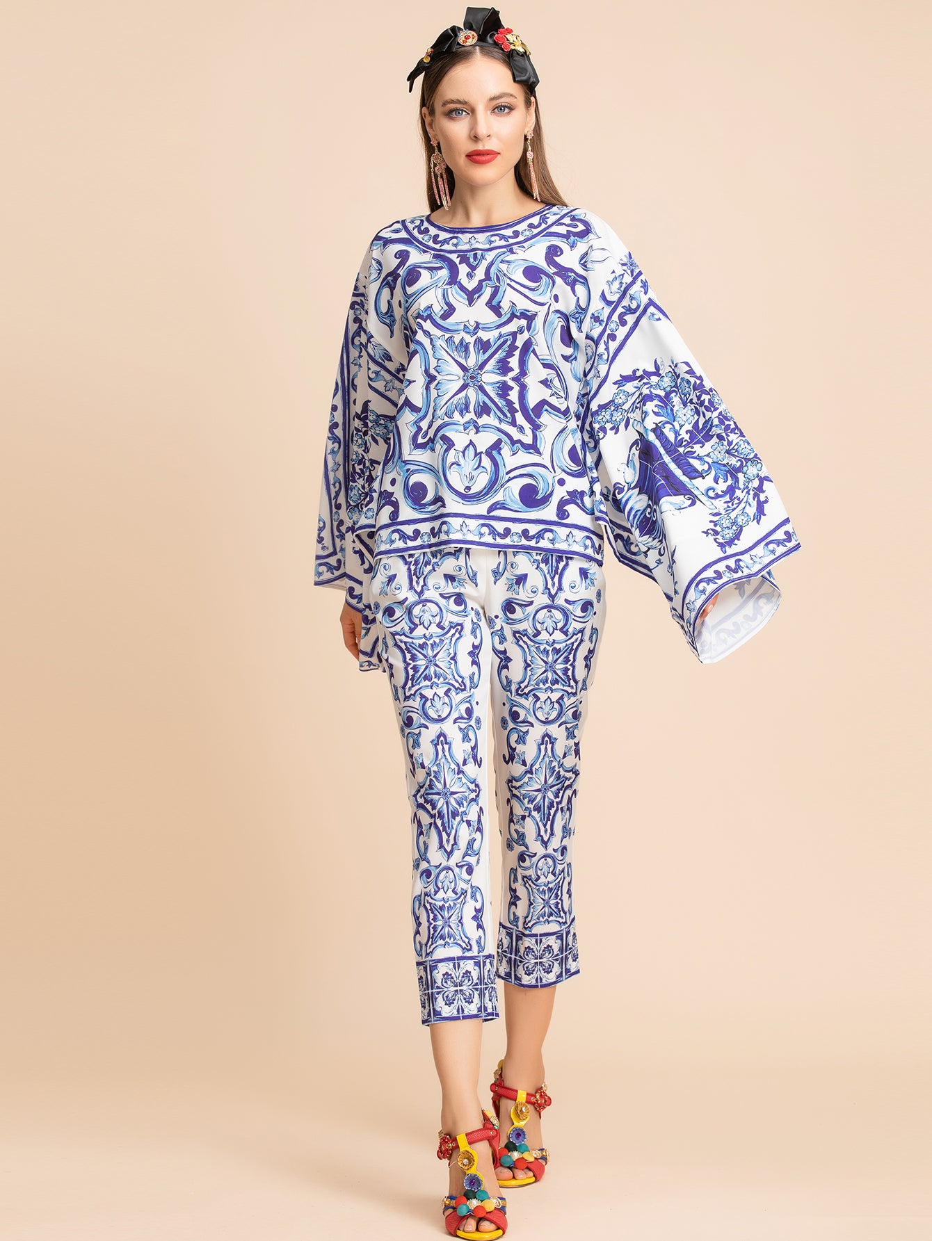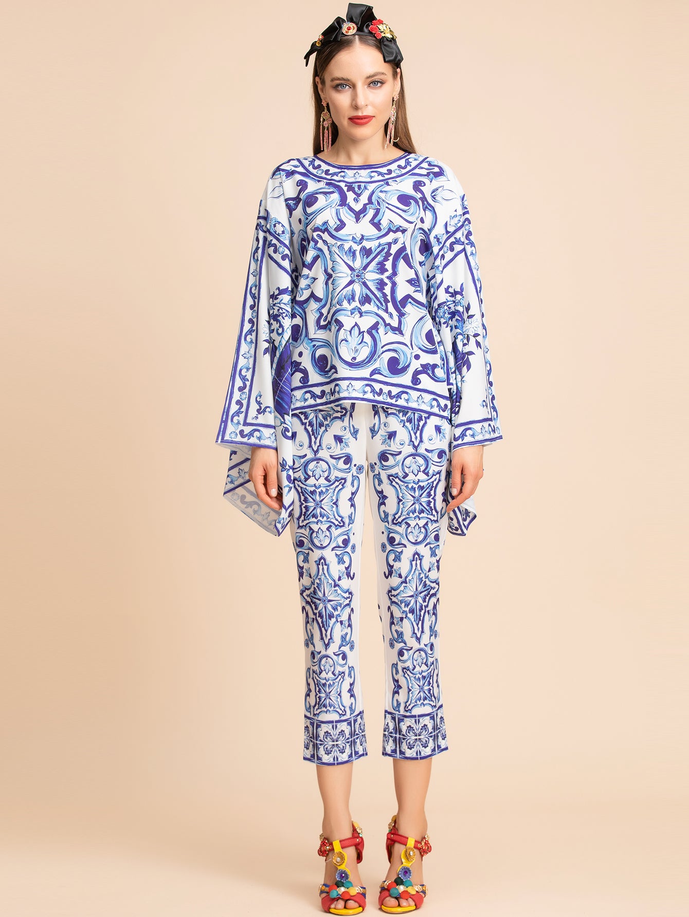 Designer Inspired“Majolica-print ”Blouse &Pant Women Suitset