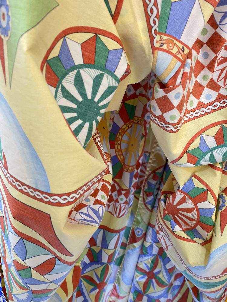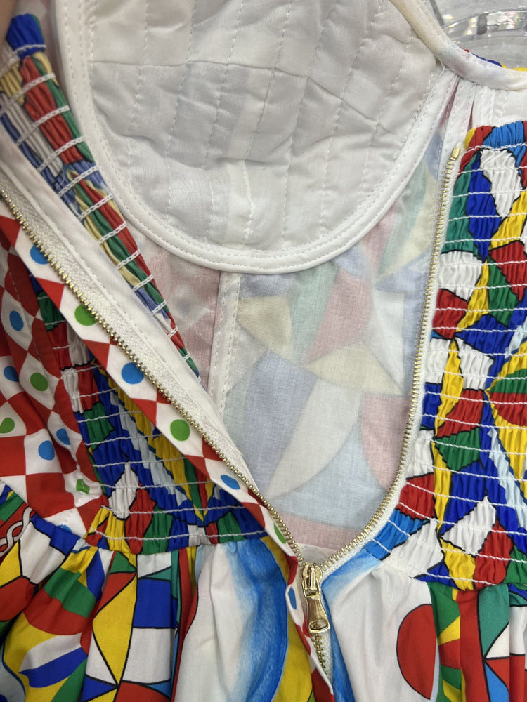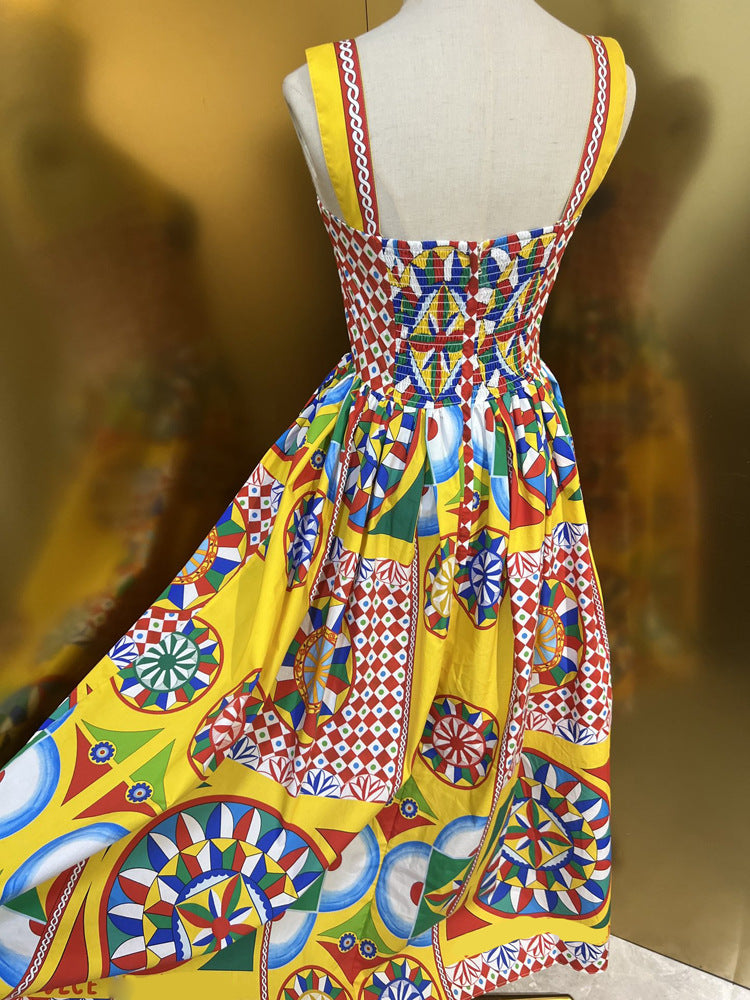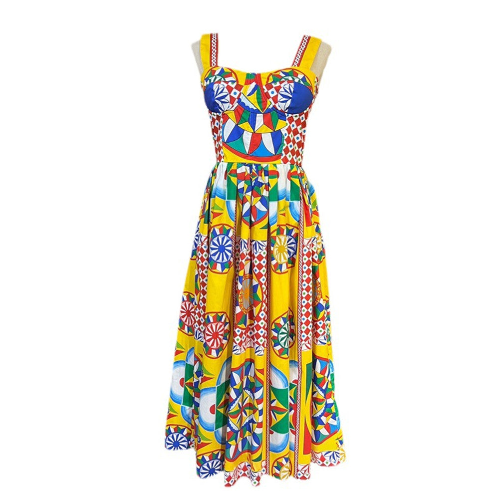 High Quality Designer Summer Beach Women's Bohemia Cotton Multicoloured Print Crumple Slim Fit Midi Dress