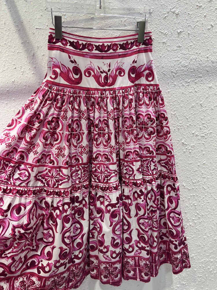Fashion Designer Summer 100% Cotton Skirts High Waist Flower Print Vintage Long Skirts