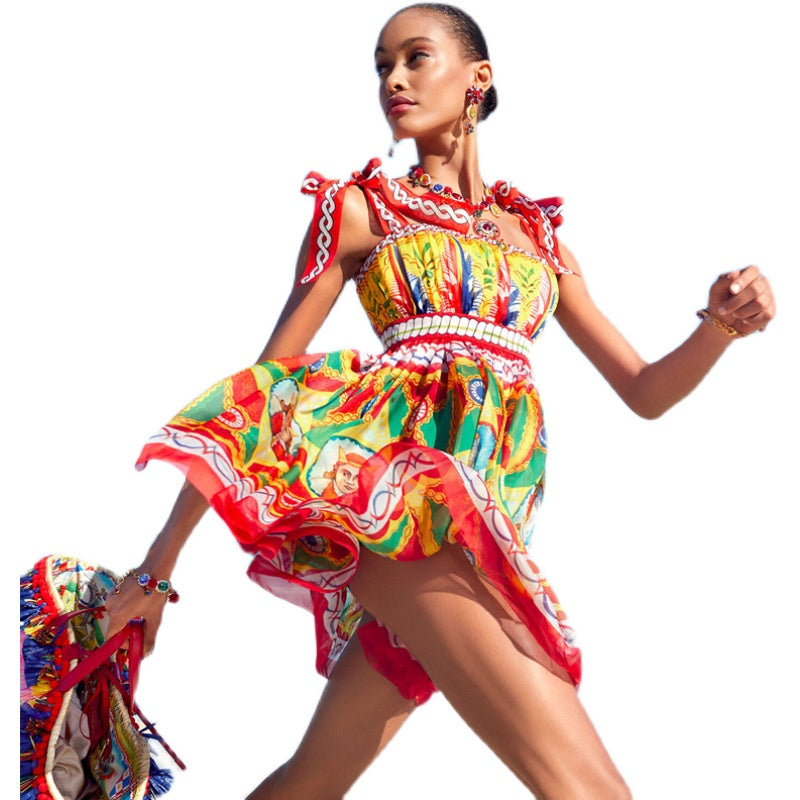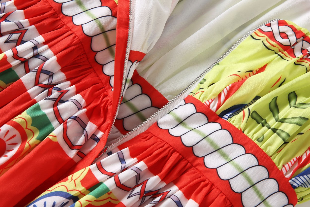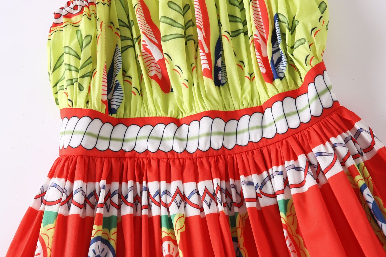 Fashion Runway Designer Inspired Summer Women's "graphic" print pleated Mini dress