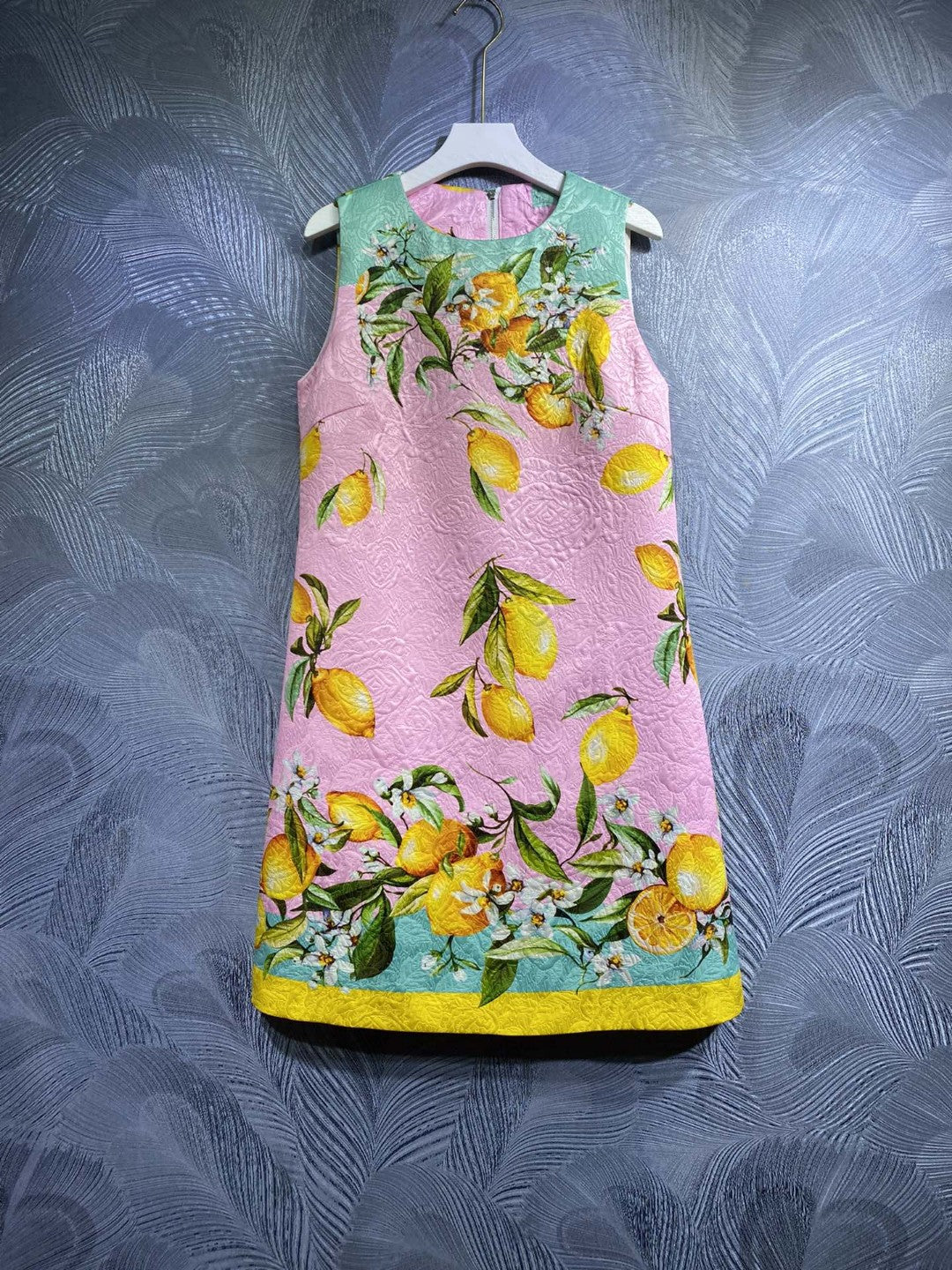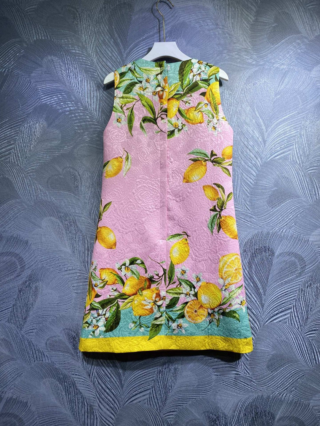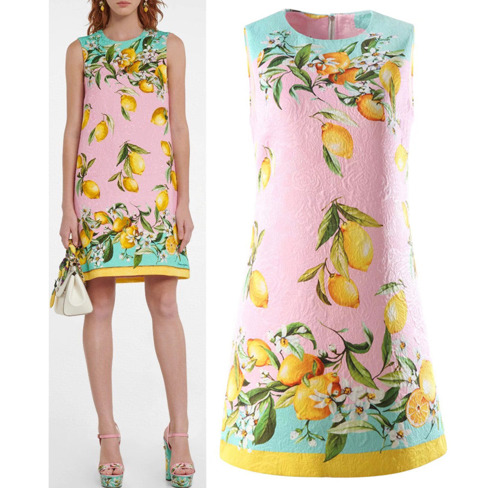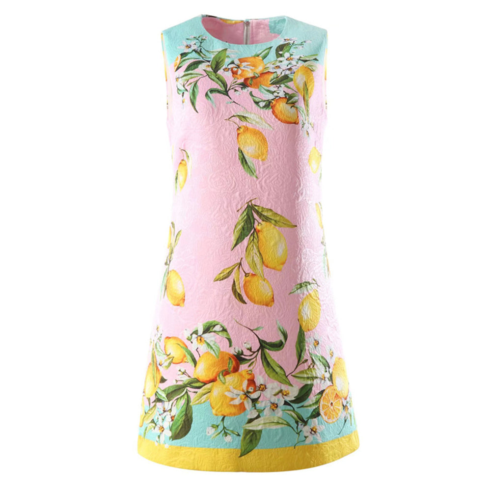 Fashion Runway Summer Mini Dress Women& Pink Lemon Printed Designer Inspired Dresses Beach Holiday Vest Loose Dress