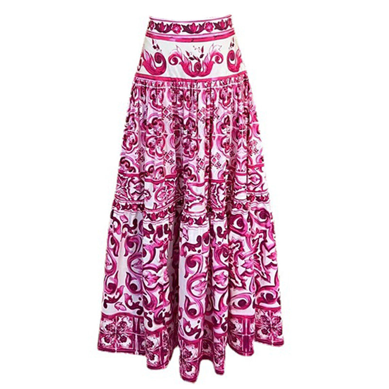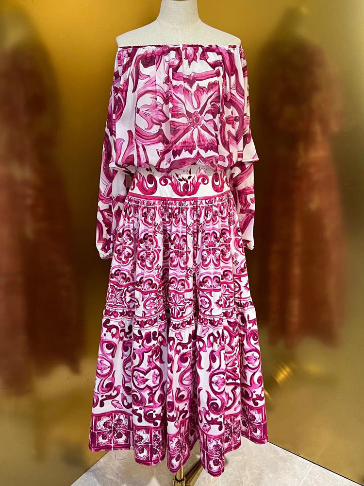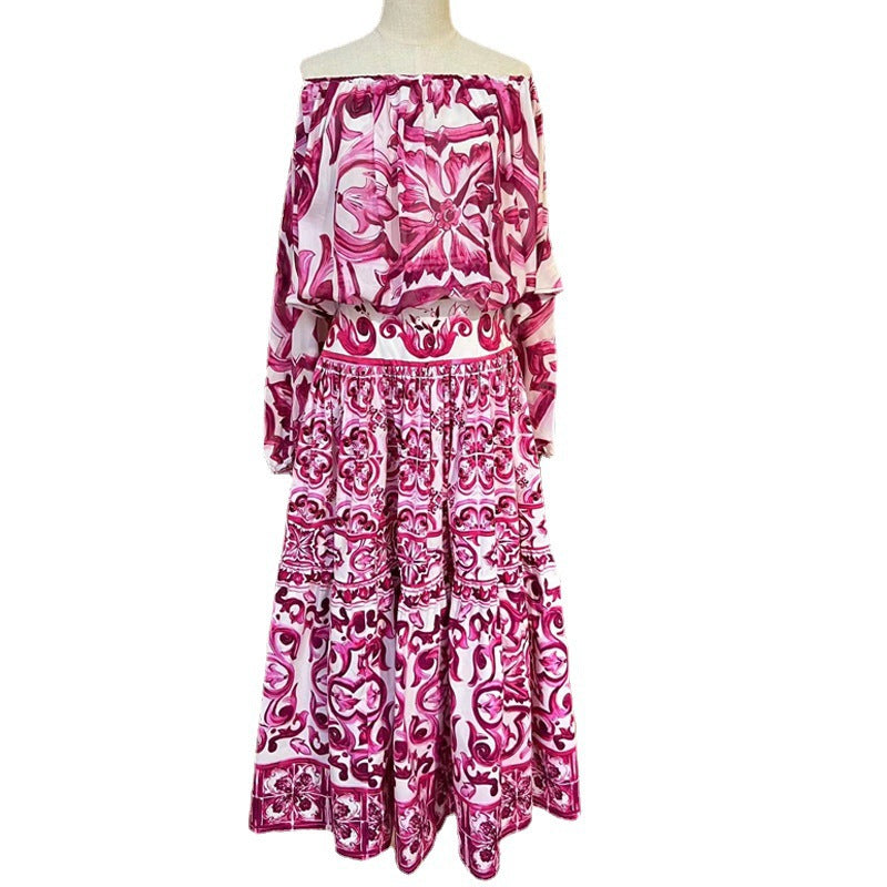 HIGH QUALITY Luxury Fashion Women Off-Shoulder Silk blouse and Cotton Maxi Skirt Summer Set For Female 2023