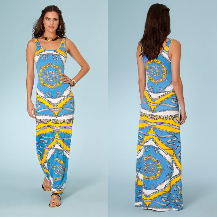 High Quality Women Printed Silk Maxi Dress Luxury Designer Dress For Summer Holiday Beach 2023