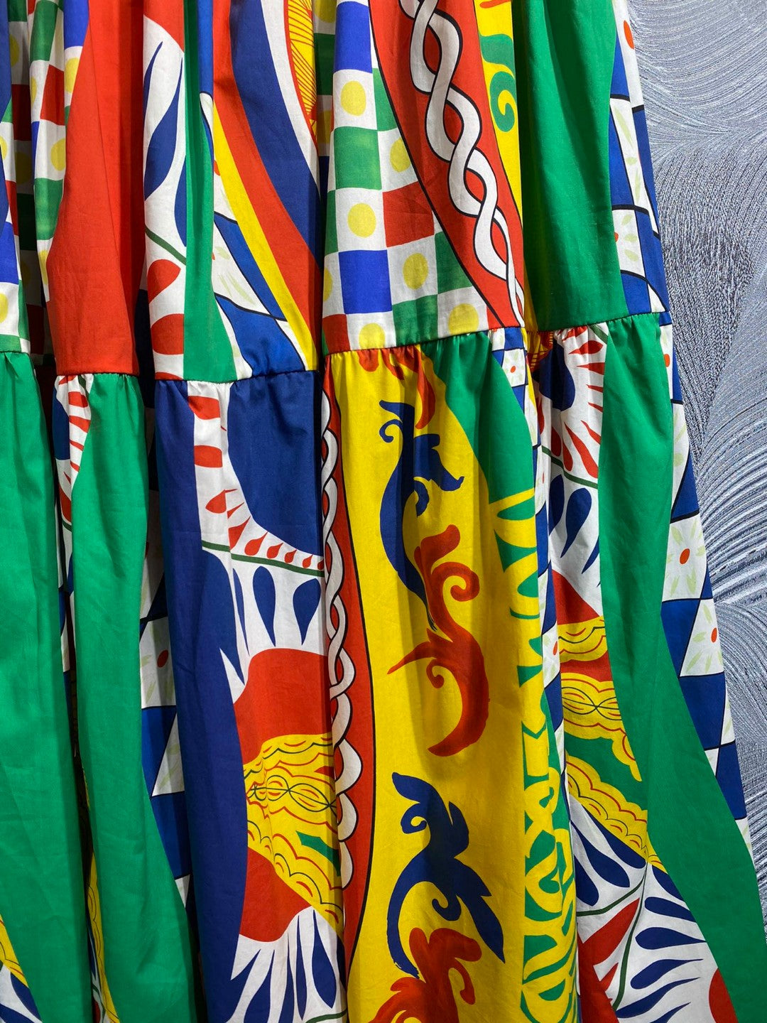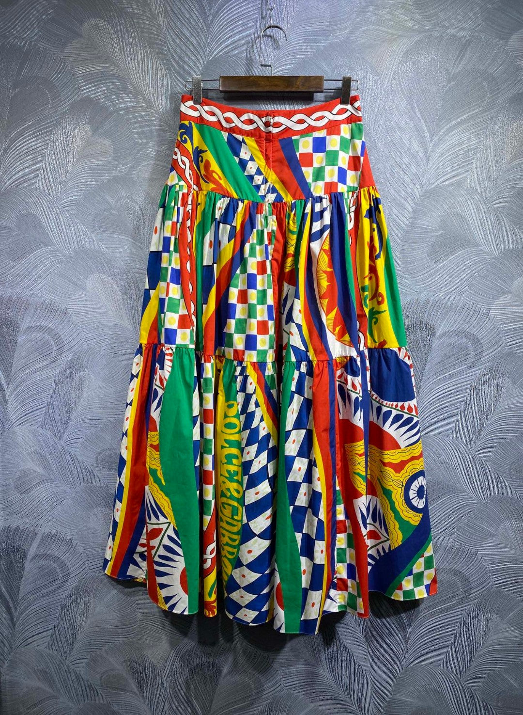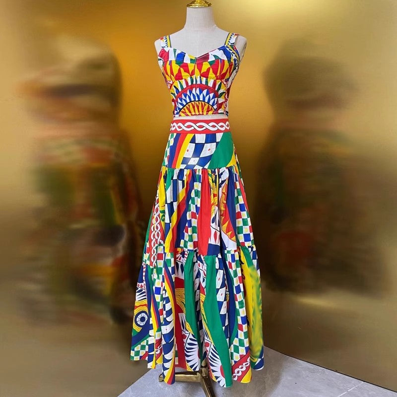Italy Stylish Women Printed Cotton Bustier Top And Long Maxi Skirt In Multicolor