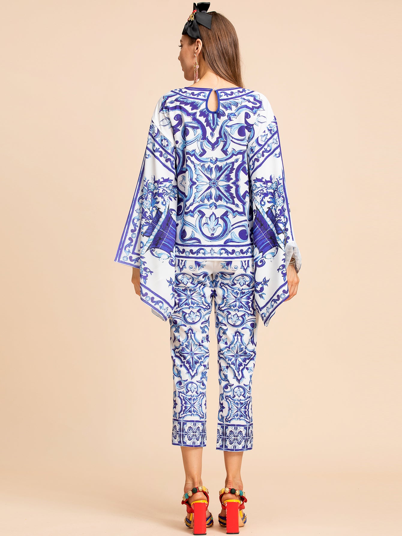 Designer Inspired“Majolica-print ”Blouse &Pant Women Suitset