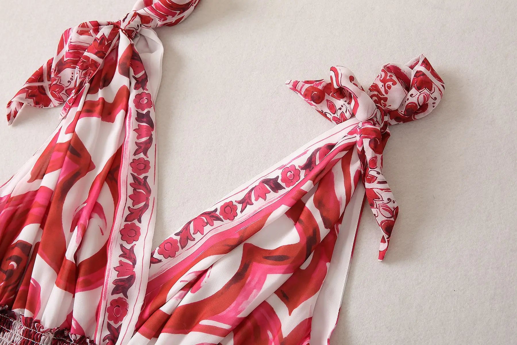 HIGH QUALITY Summer Holiday Women Maxi Dress With V-Neck Elastic Waist Blue And Porcelain Print For Party