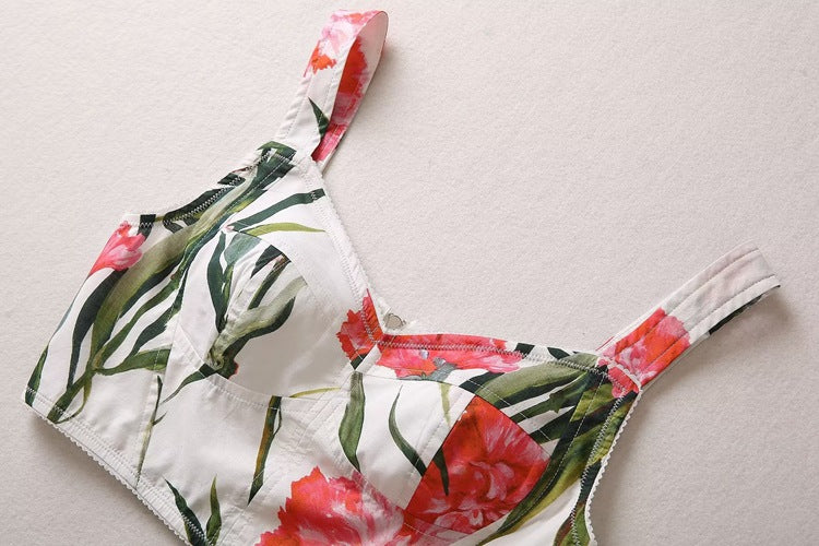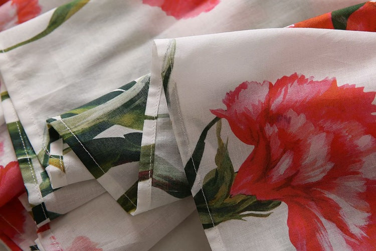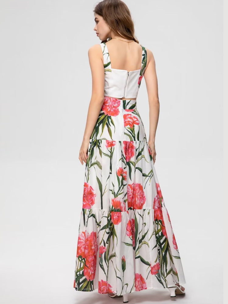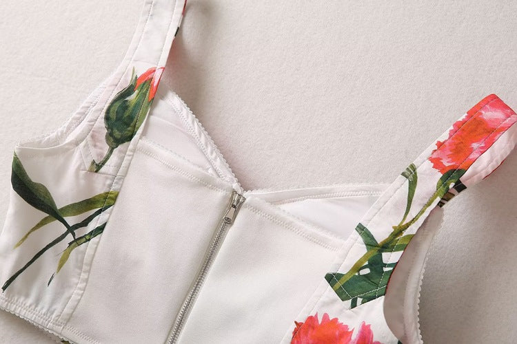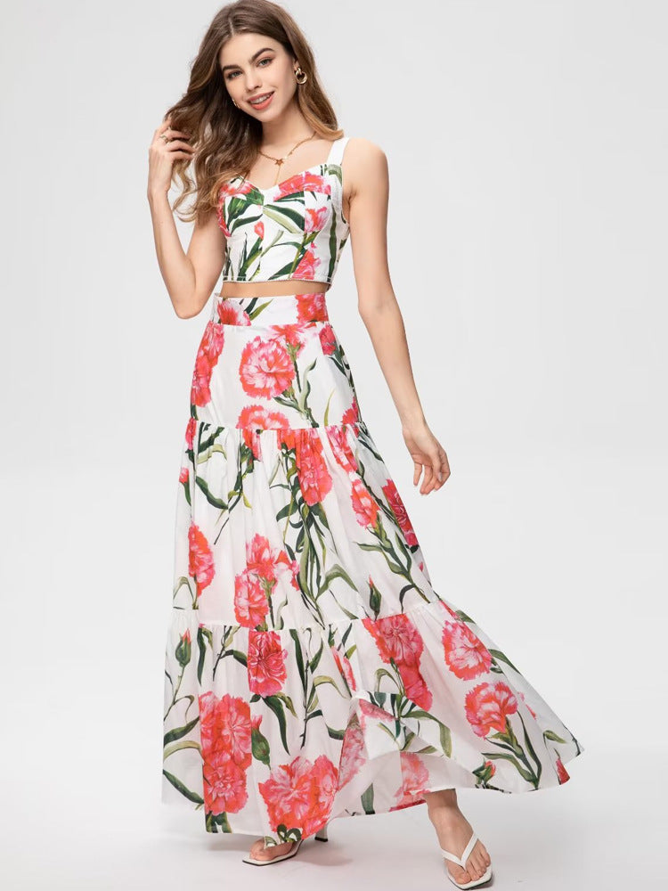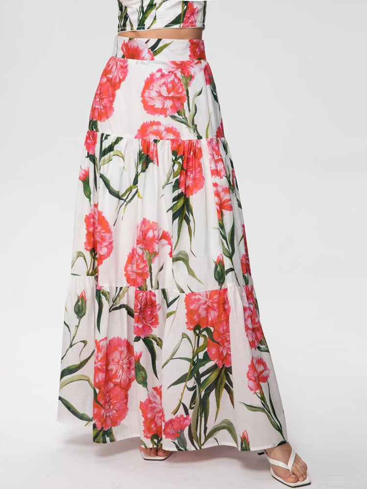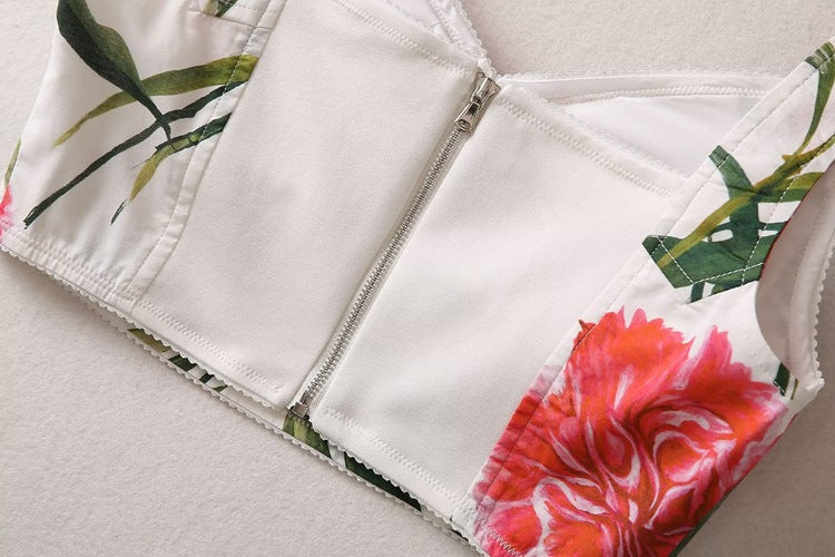 Runway Fashion Designer inspired Women Poppy-Print Cotton Corset Top and Midi Skirt elegant Set for Summer vacation