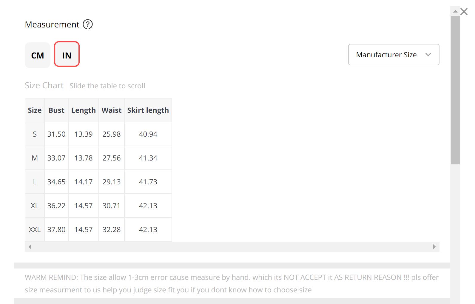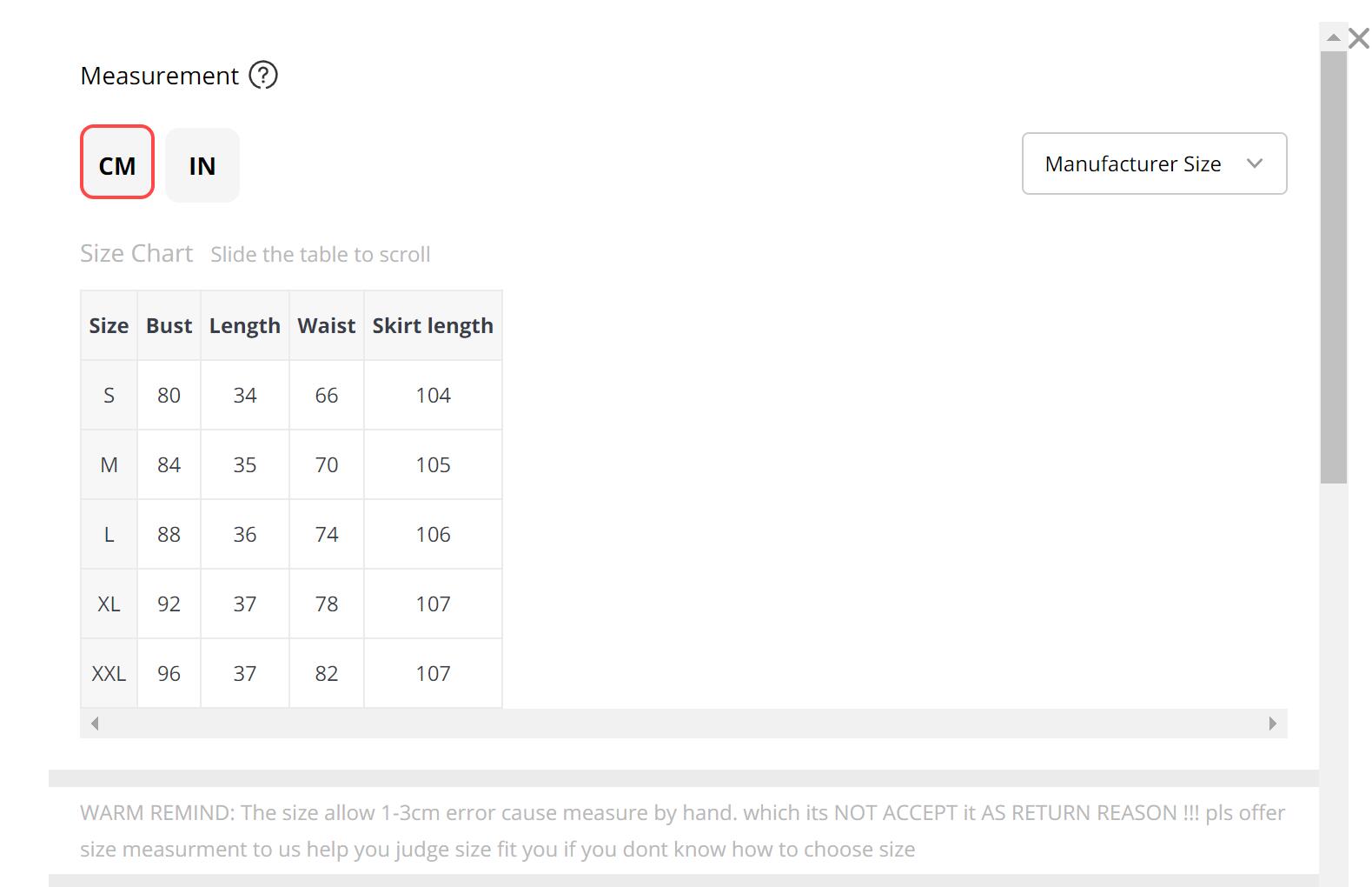 | NOTE: 1. Please strictly follow the size chart to select the size. Do not select directly according to your habits. 2. The size allow 1-3cm error cause measure by hand. which its NOT ACCEPT it AS RETURN REASON !!! |